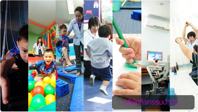 สำหรับเด็กและวัยรุ่น ที่มีความบกพร่องเกี่ยวกับพัฒนาการและการทำกิจกรรมต่าง ๆ ในชีวิตประจำวัน เช่น การช่วยเหลือตนเองในการทำกิจวัตรประจำวันต่าง ๆ การเรียนรู้ การจัดการกับเวลาในการทำกิจกรรมต่าง ๆ ในชีวิตประจำวัน อันเนื่องมาจากโรคหรือความเจ็บป่วยตามกลุ่มโรคต่าง กลุ่มผู้รับบริการที่สามาถรับคำปรึกษาและขอรับการประเมินทางกิจกรรมบำบัด ได้แก่ เด็กที่มีปัญหาอยู่ไม่นิ่งสมาธิสั้น, ออทิสติก, เด็กที่มีความบกพร่องในด้านการเรียนรู้ (เด็กแอลดี), เด็กที่มีความบกพร่องทางสติปัญญา, เด็กสมองพิการ, ฯลฯ บริการทางกิจกรรมบำบัดสำหรับเด็กและวัยรุ่น ได้แก่